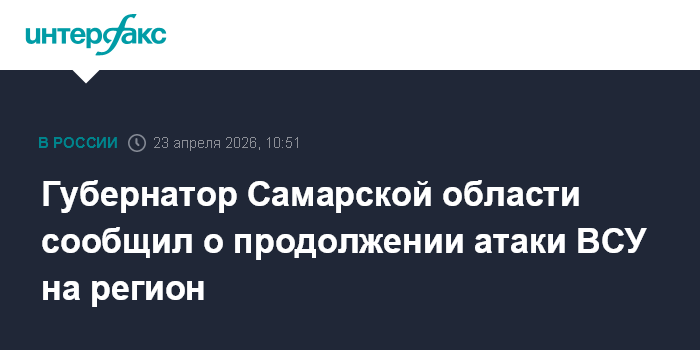 Москва. 23 апреля. INTERFAX.RU - Атака ВСУ на Самарскую область продолжается, сообщил губернатор региона Вячеслав Федорищев в своем канале в Мах в четверг.