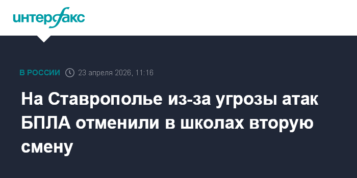 Москва. 23 апреля. INTERFAX.RU - В школах Ставропольского края отменили занятия во вторую смену из-за объявленной беспилотной опасности, сообщил глава Ставрополья Владимир Владимиров.