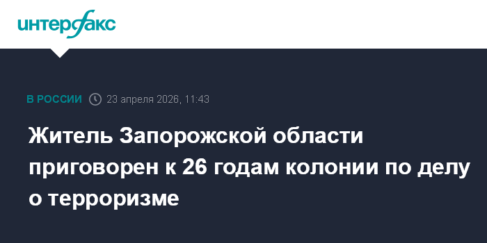 Житель Запорожской области приговорен к 26 годам колонии по делу о терроризме