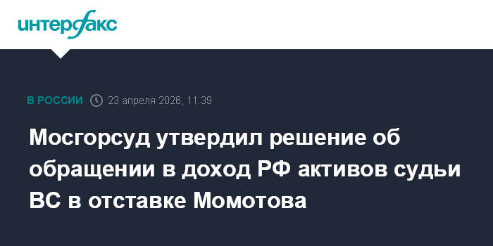 Мосгорсуд утвердил решение об обращении в доход РФ активов судьи ВС в отставке Момотова