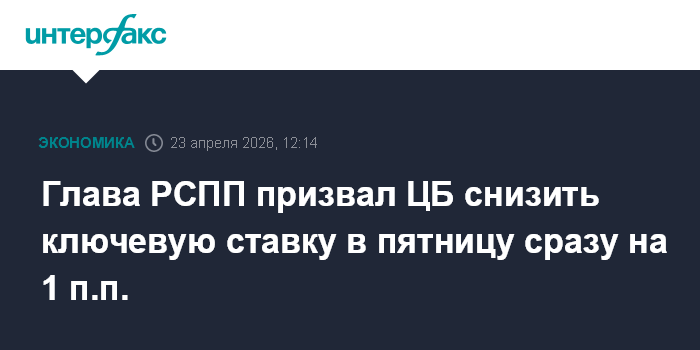 Глава РСПП призвал ЦБ снизить ключевую ставку в пятницу сразу на 1 п.п.