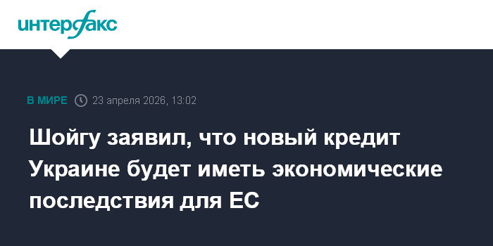 Москва. 23 апреля. INTERFAX.RU - Секретарь Совета безопасности РФ Сергей Шойгу заявил, что новый кредит Украине в размере 90 млрд евро будет иметь экономические последствия для ЕС.