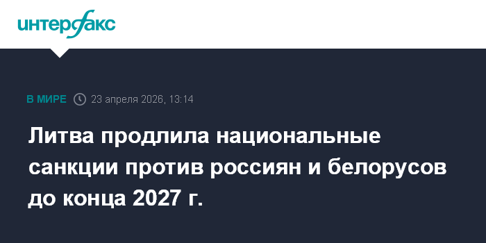 Москва. 23 апреля. INTERFAX.RU - Парламент Литвы принял решение о продлении санкций в отношении граждан России и Белоруссии, передает в четверг портал Литовского национального радио и телевидения LRT.