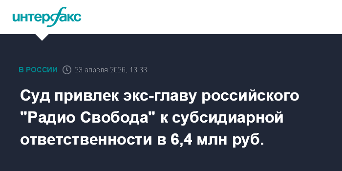 Суд привлек экс-главу российского "Радио Свобода" к субсидиарной ответственности в 6,4 млн руб.