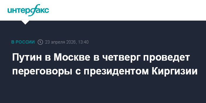 Путин в Москве в четверг проведет переговоры с президентом Киргизии