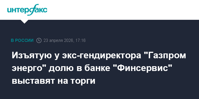 Изъятую у экс-гендиректора "Газпром энерго" долю в банке "Финсервис" выставят на торги