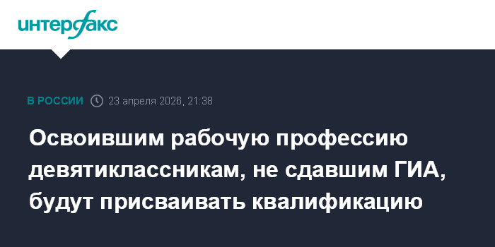Москва. 23 апреля. INTERFAX.RU - Выпускники девятых классов, успешно освоившие рабочую профессию, получат свидетельство о присвоении квалификации, профобучение они будут совмещать с подготовкой к повторному прохождению государственной итоговой аттестации; этим правом могут воспользоваться дети, не сдавшие ГИА, уже в 2026 году, сообщил глава Минпросвещения РФ Сергей Кравцов.