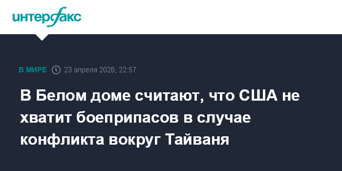 В Белом доме считают, что США не хватит боеприпасов в случае конфликта вокруг Тайваня