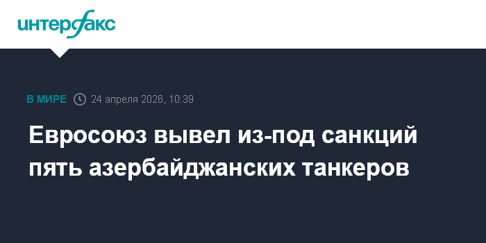 Москва. 24 апреля. INTERFAX.RU - Евросоюз вывел из-под санкционных ограничений пять танкеров, владельцем которых является Азербайджан, сообщило ЗАО "Азербайджанское каспийское морское пароходство" (ASCO).