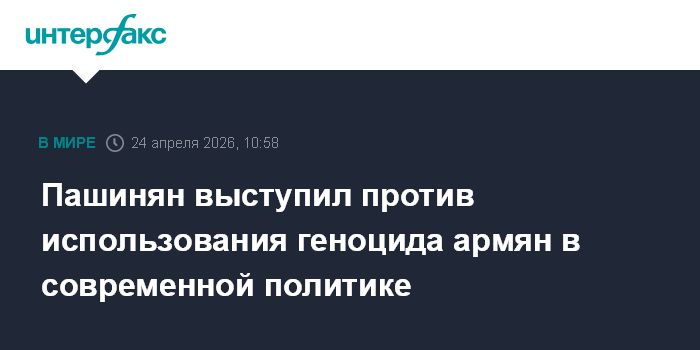 Москва. 24 апреля. INTERFAX.RU - Премьер-министр Армении Никол Пашинян считает обоснованным вывод ученых о том, что геноцид армян в Османской Турции 1915 года стал, в том числе, результатом вовлечения армянского народа в начале 19-го века в международные интриги.