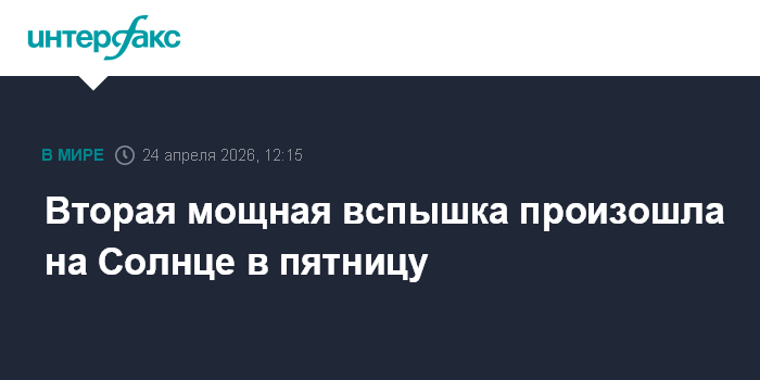 Москва. 24 апреля. INTERFAX.RU - На Солнце зафиксирована вторая за день вспышка высшего класса Х, сообщили в Институте прикладной геофизики имени Федорова.