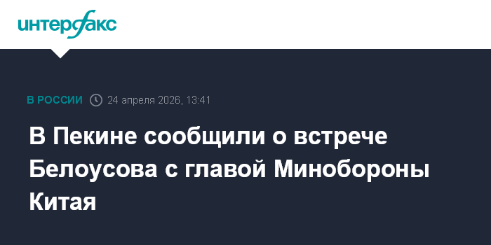 "24 апреля министр обороны Китая Дун Цзюнь в рамках своего визита в Россию провел переговоры с министром обороны России Белоусовым", - говорится в сообщении Минобороны КНР.
