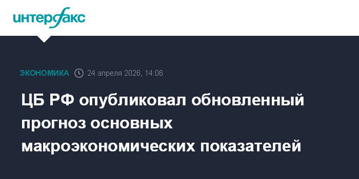 Москва. 24 апреля. INTERFAX.RU - Банк России в пятницу опубликовал обновленный среднесрочный прогноз основных макроэкономических показателей.