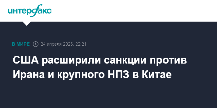 США расширили санкции против Ирана и крупного НПЗ в Китае