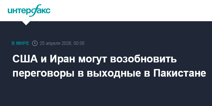 Москва. 25 апреля. INTERFAX.RU - США и Иран планируют вскоре продолжить переговоры в Пакистане, диалог может возобновиться в эти выходные.