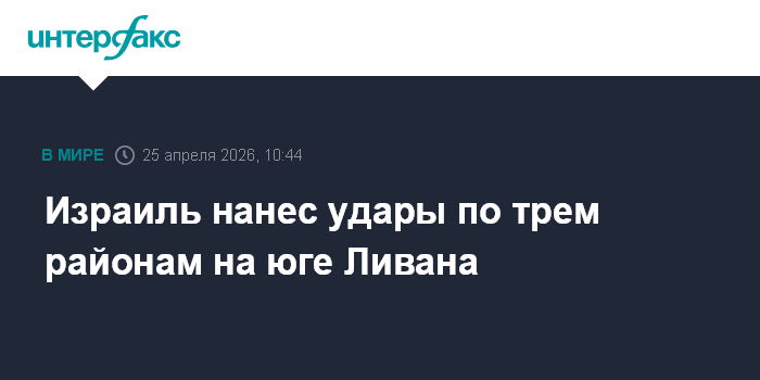 Москва. 25 апреля. INTERFAX.RU - Армия обороны Израиля (ЦАХАЛ) сообщила, что нанесла удары по трем районам на юге Ливана.