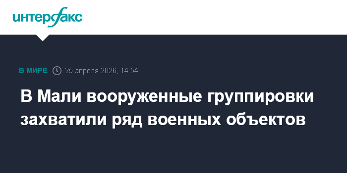 Москва. 25 апреля. INTERFAX.RU - Вооруженные группировки захватили несколько военных объектов в Мали, сообщают в субботу западные СМИ со ссылкой на военных.