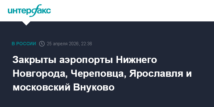 Москва. 25 апреля. INTERFAX.RU - Аэропорты Нижнего Новгорода (Чкалов), Череповца, Ярославля (Тушнона) и столичный Внуково временно не обслуживают рейсы, сообщили в Росавиации.