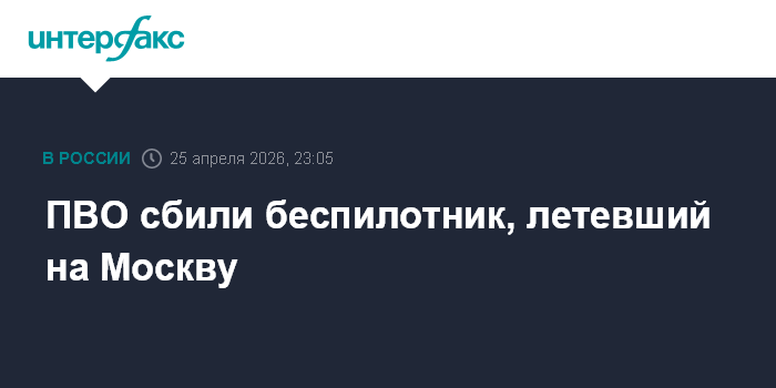 Москва. 25 апреля. INTERFAX.RU - Силы ПВО отразили атаку одного украинского беспилотника на Москву, сообщил мэр столицы Сергей Собянин в своем канале в мессенджере Max.