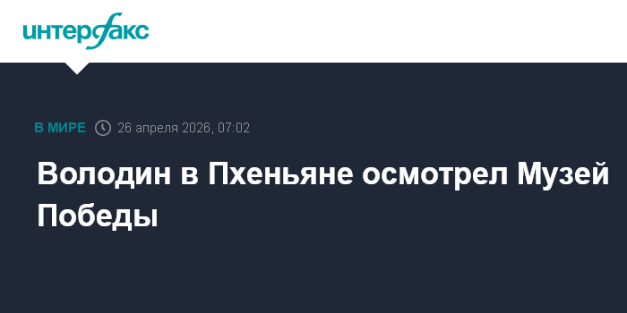 По поручению президента России Владимира Путина 26 апреля Володин примет участие в торжественной церемонии открытия Мемориального комплекса и Музея боевых подвигов героев зарубежной военной операции, посвященного мужеству корейских солдат, принимавших участие в освобождении захваченных ВСУ районов Курской области.