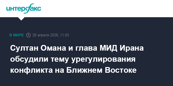 Москва. 26 апреля. INTERFAX.RU - Султан Омана Хейсам бен Тарик Аль Саид и глава МИД Ирана Аббас Аракчи в воскресенье провели переговоры в Маскате, сообщает Al Jazeera.