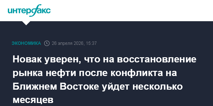 Москва. 26 апреля. INTERFAX.RU - Восстановление мирового рынка нефти по завершении ближневосточного конфликта займет несколько месяцев, считает вице-премьер РФ Александр Новак.