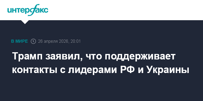 Москва. 26 апреля. INTERFAX.RU - Президент США Дональд Трамп заявил, что поддерживает контакты как с Москвой, так и Киевом для поисков решения украинского конфликта.