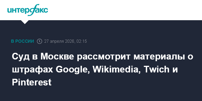 Суд в Москве рассмотрит материалы о штрафах Google, Wikimedia, Twich и Pinterest