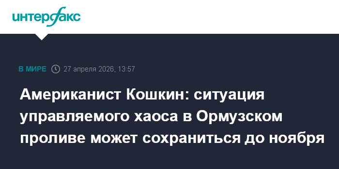 Москва. 27 апреля. INTERFAX.RU - Почему Дональд Трамп продлевает перемирие в войне с Ираном, какую выгоду извлекают из этого стороны, что ждет Ормузский пролив до выборов в Конгресс США в ноябре, - об этом в интервью обозревателю "Интерфакса" Борису Геворкяну рассказывает старший научный сотрудник Института США и Канады РАН Павел Кошкин.