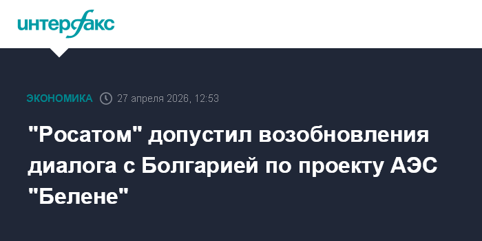 Москва. 27 апреля. INTERFAX.RU - Госкорпорация "Росатом" считает возможным возврат к диалогу на тему поставок, сервиса, а также проекта АЭС "Белене" с Болгарией в будущем, сообщил изданию "Страна Росатом" глава компании Алексей Лихачев.
