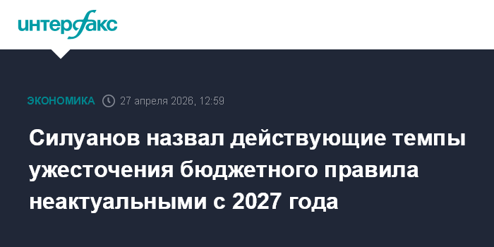 Силуанов назвал действующие темпы ужесточения бюджетного правила неактуальными с 2027 года