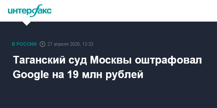 Таганский суд Москвы оштрафовал Google на 19 млн рублей