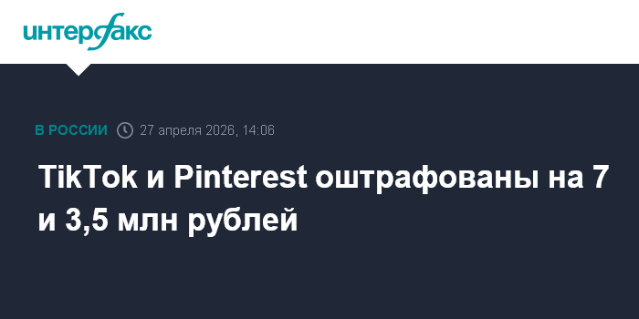 TikTok и Pinterest оштрафованы на 7 и 3,5 млн рублей