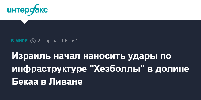 "ЦАХАЛ начала наносить удары по объектам инфраструктуры "Хезболлы" в долине Бекаа и в других районах южного Ливана", - говорится в заявлении ЦАХАЛ в телеграм-канале.