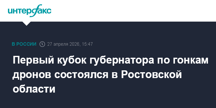 Москва. 27 апреля. INTERFAX.RU - Более 180 школьников из 11 городов и районов Ростовской области приняли участие в первом региональном "Кубке губернатора по гонкам дронов" в Ростове-на-Дону, сообщает управление информационной политики правительства региона.