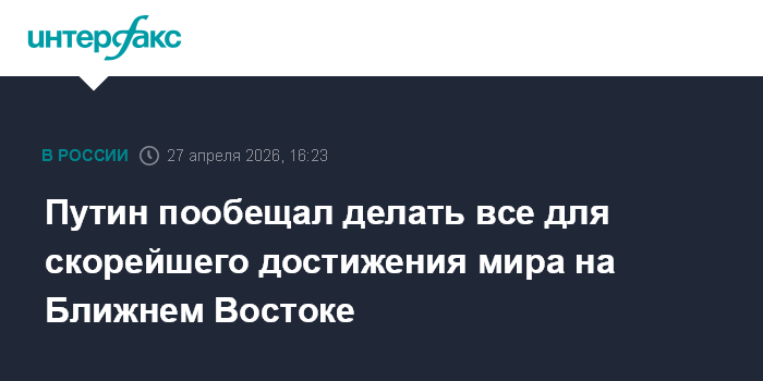 Москва. 27 апреля. INTERFAX.RU - Россия сделает все, чтобы мир на Ближнем Востоке был достигнут как можно быстрее, заявил президент РФ Владимир Путин.