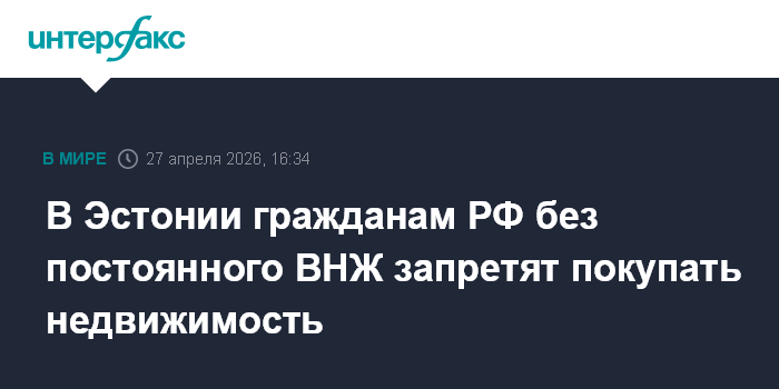 В Эстонии гражданам РФ без постоянного ВНЖ запретят покупать недвижимость