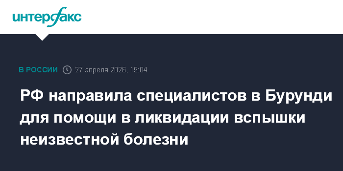 РФ направила специалистов в Бурунди для помощи в ликвидации вспышки неизвестной болезни