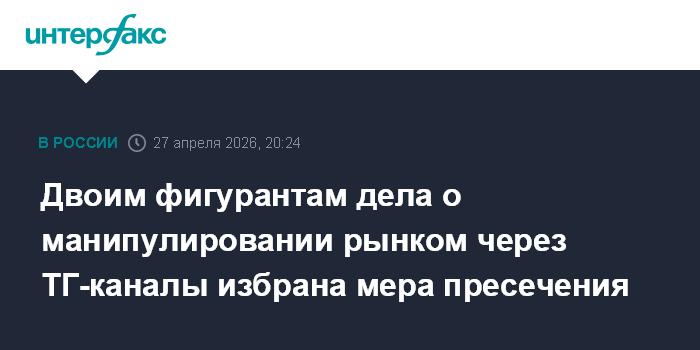 Двоим фигурантам дела о манипулировании рынком через ТГ-каналы избрана мера пресечения