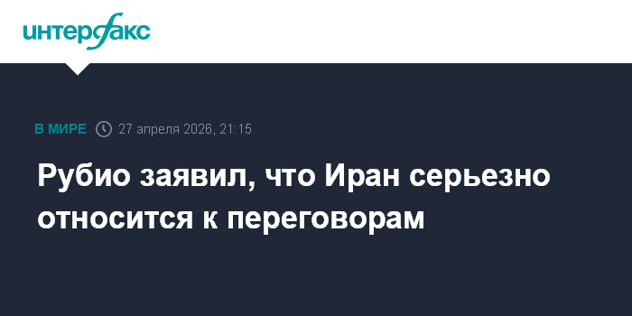 Москва. 27 апреля. INTERFAX.RU - Госсекретарь США Марко Рубио считает, что Иран серьезно настроен на завершение конфликта путем переговоров.