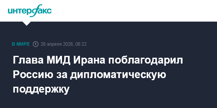 Москва. 28 апреля. INTERFAX.RU - Министр иностранных дел Ирана Аббас Аракчи, накануне встречавшийся с президентом РФ Владимиром Путиным в Санкт-Петербурге, поблагодарил Россию за дипломатическую поддержку и подчеркнул глубину стратегического партнерства двух стран.