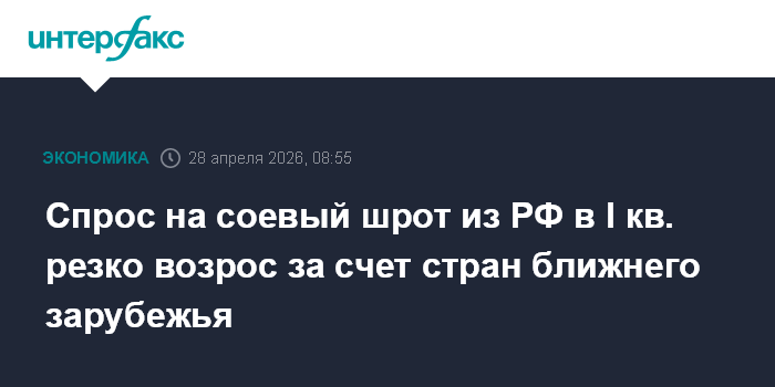 Москва. 28 апреля. INTERFAX.RU - Спрос на российский соевый шрот растет со стороны стран ближнего зарубежья.