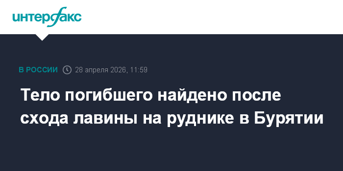 Москва. 28 апреля. INTERFAX.RU - Один погибший найден на месте схода лавины на руднике "Ирокинда" (группа "Z.Голд") в Муйском районе Бурятии, сообщает МЧС России.