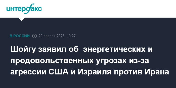 Москва. 28 апреля. INTERFAX.RU - Действия США и Израиля против Ирана создали угрозы в области энергетической и продовольственной безопасности в мире, заявил секретарь Совета безопасности РФ Сергей Шойгу во вторник.