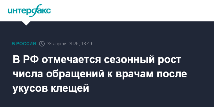 В РФ отмечается сезонный рост числа обращений к врачам после укусов клещей