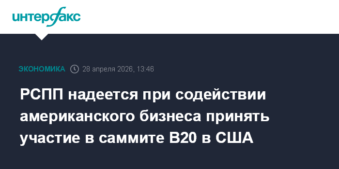 Москва. 28 апреля. INTERFAX.RU - Российский союз промышленников и предпринимателей мог бы принять участие в саммите "Деловой двадцатки" (B20) при условии приостановки действия санкций со стороны председательствующих в 2026 году в G20 США, заявил глава РСПП Александр Шохин, отметив, что содействие в этом могла бы оказать Американская торговая палата в России (AmCham Russia).