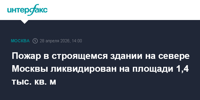 Москва. 28 апреля. INTERFAX.RU - Пожарные ликвидировали возгорание в строящемся здании на севере Москвы.