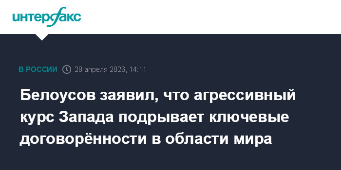 Белоусов заявил, что агрессивный курс Запада подрывает ключевые договорённости в области мира