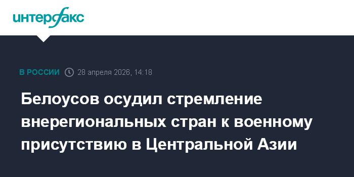Белоусов осудил стремление внерегиональных стран к военному присутствию в Центральной Азии