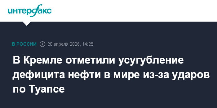 В Кремле отметили усугубление дефицита нефти в мире из-за ударов по Туапсе
